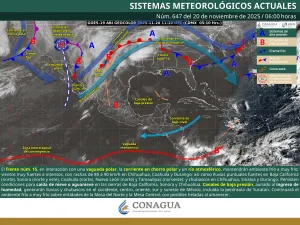 A su vez, persisten condiciones para caída de nieve o aguanieve en las sierras de Baja California, Sonora y Chihuahua.