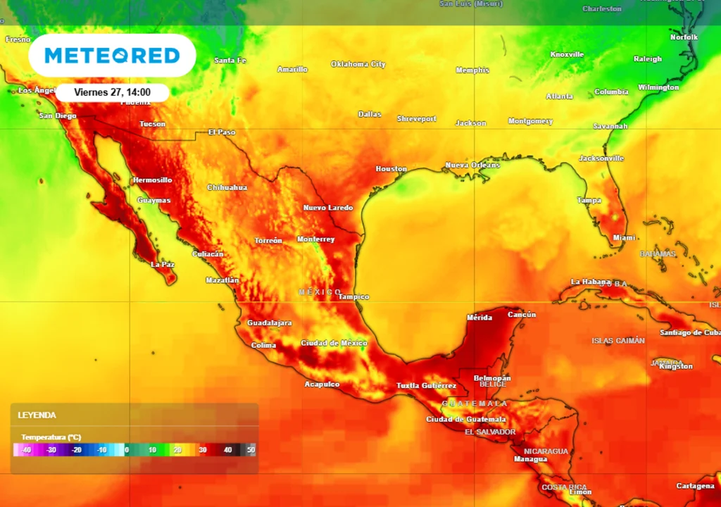 Mañana, viernes 27 de febrero, México registrará temperaturas máximas de 40 a 45 °C en varios estados, bajo la influencia de una extensa circulación anticiclónica ubicada en niveles medios y altos de la tropósfera. El sistema mantiene condiciones de tiempo estable y un marcado déficit de humedad, intensificando el calor extremo en gran parte del territorio.