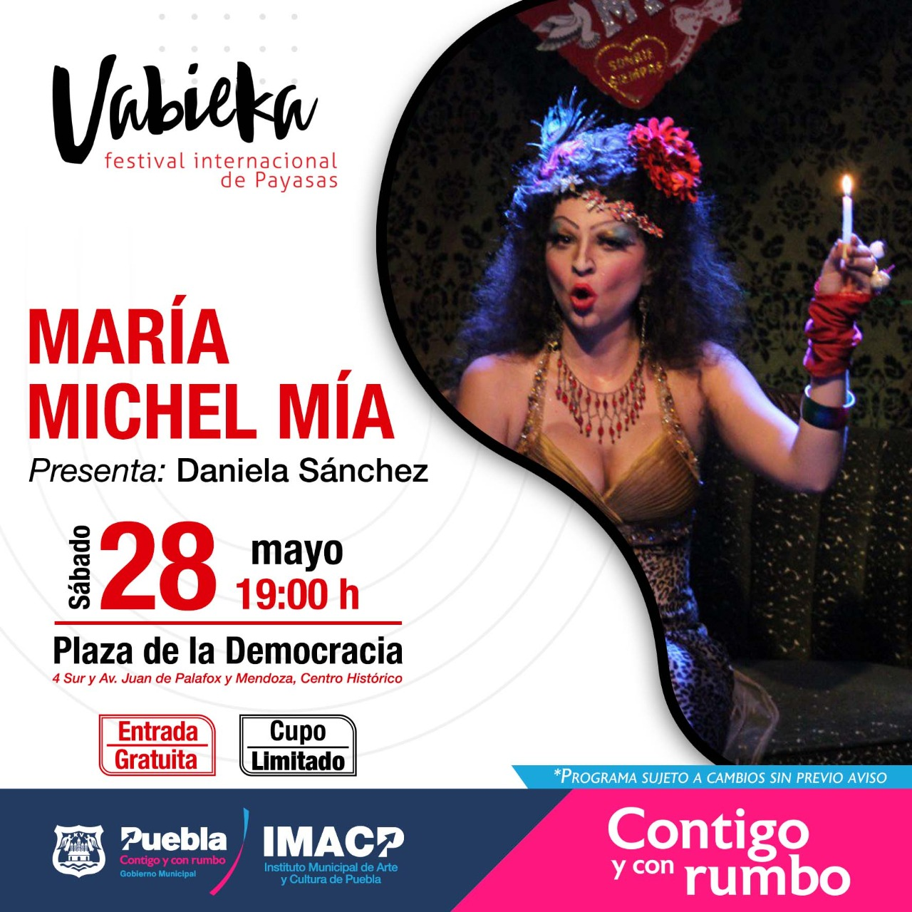 Del 27 al 29 de mayo se realiza en la plaza de la Democracia el Festival Internacional de Payasas “Vabieka”, en tanto el sábado 28 se impartirá el taller “Actitud Creadora”, por parte de la Asociación Resorte en el Museo Urbano Interactivo.