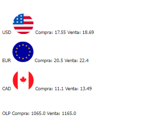 Azteca (20 pesos oro) $34,008.00 $40,172.00 Hidalgo (10 pesos oro) $17,004.00 $20,086.00 1/2 Hidalgo (5 pesos oro) $8,502.00 $10,043.00 1/4 Hidalgo (2.5 pesos oro) $4,251.00 $5,022.00 1/5 Hidalgo (2 pesos oro) $3,401.00 $4,017.00 Centenario (50 pesos oro) $85,020.00 $100,430.00 Onza Libertad de Plata $900.45 $1,406.30Precios informativos (MXN)