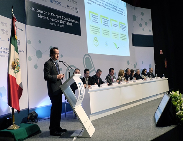 El titular del IMSS, Mikel Arriola, con la Secretaria de la Función Pública, Arely Gómez, y el Director General del ISSSTE, José Reyes Baeza, presentó las reglas del juego y dijo que los ganadores se conocerán en octubre-noviembre; es decir, un mes antes que el año pasado, en beneficio del abasto oportuno de medicinas.
