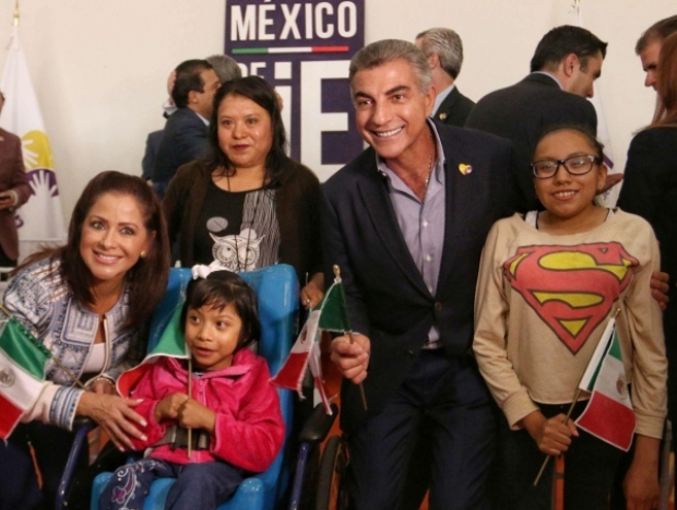 San Andrés Cholula, Puebla.- El gobernador Tony Gali y la Presidenta del Patronato del Sistema Estatal DIF, Dinorah López de Gali, se sumaron a la campaña "México de Pie" de fundación Teletón, que se realizará el 6 y 7 de octubre en todo el país, para promover el altruismo, los valores y la inclusión.