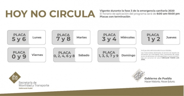¡Síguenos!A partir del Lunes 11 de mayo, dejaran de circular vehículos en el Estado de Puebla, esto como parte del combate de la pandemia del Covid-19 y durante la semana de mayor contagio.
