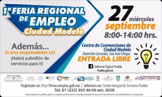 Informó que la Primera Feria Regional de Empleo se realizará en el Centro de Convenciones de Ciudad Modelo, de 8:00 a 14:00 horas, con entrada gratuita. Además dijo que los asistentes deberán llevar sus solicitudes de empleo elaboradas y/o Currículum Vitae así como pre-registrarse en la página de Internet ferias.empleo.gob.mx.