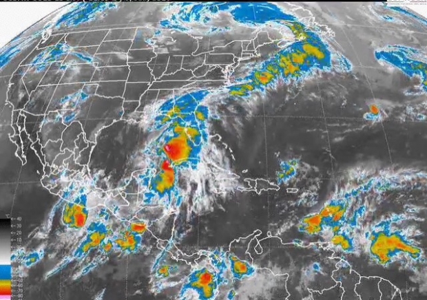 Los desprendimientos nubosos generarán lluvias muy fuertes con tormentas eléctricas y granizo en Yucatán y Quintana Roo, fuertes en Campeche y oleaje de 2 a 3 metros de altura en las costas de los estados mencionados.