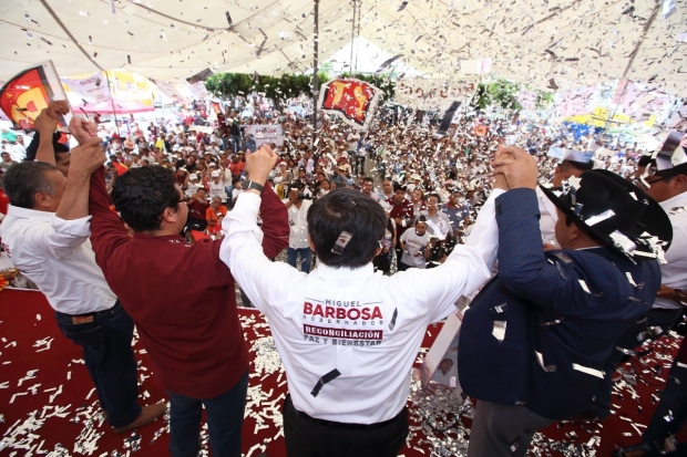 Los Reyes de Juárez, Pue.- Al acudir a un encuentro de campaña en este municipio, Miguel Barbosa Huerta candidato a gobernador de la Coalición Juntos Haremos Historia aseguró que no busca la anulación de las fuerzas políticas diferentes a Morena. “Yo no busco la anulación de todas las fuerzas políticas en favor de la fuerza política a la que yo pertenezco yo veo que es momento de estar unidos”.