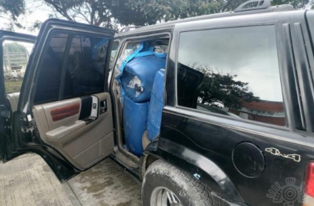En el lugar dejaron la camioneta que transportaba 13 garrafas con capacidad de 60 litros cada una, que contenían combustible presuntamente ilegal.