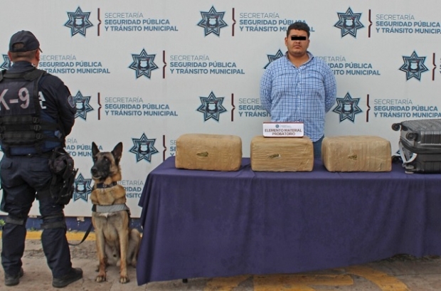 Policías Municipales del Grupo K9 realizaron un recorrido de seguridad en pasillos de la Central de Autobuses de Puebla (CAPU), cuando un ejemplar canino especializado en la detección de narcóticos modificó su comportamiento frente a una maleta, propiedad de un hombre.