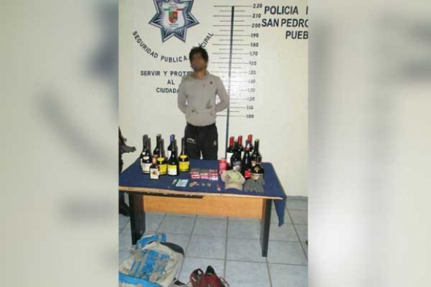 Policías municipales de San Pedro Cholula, observan lograron asegurar a "El Sin rostro”, un sujeto señalado de cometer robos en Oxxos en la zona de aquel municipio, mediante un operativo de revisión y rutina los uniformados le marcaron el alto en Bulevar Forjadores y La Carcaña, al sujeto le aseguraron dinero en efectivo, botellas de alcohol, cajetillas de cigarros y una navaja con la que amagaba a los empleados.