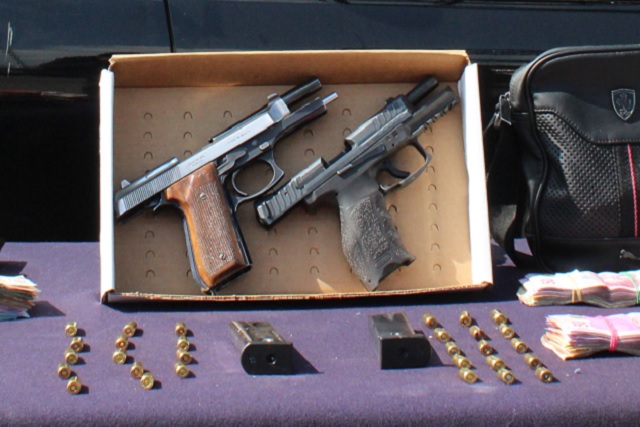 Durante la implementación del protocolo de actuación policial, los elementos hallaron entre las pertenencias de los varones dos armas de fuego calibre 9 milímetros, 29 cartuchos útiles y poco más de un millón de pesos en efectivo. Al no poder comprobar la legal procedencia de las armas y del dinero descrito, se procedió a la detención de Sergio “N.” y Jesús “N.”.