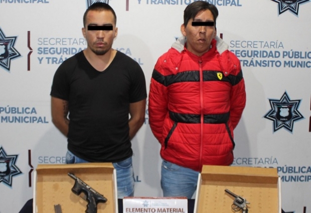 Como resultado de una oportuna intervención, la Secretaría de Seguridad Pública y Tránsito Municipal (SSPTM) de Puebla detuvo en la colonia Viveros del Valle a Marco Erick “N.” y Fabricio “N.”, de 32 y 25 años de edad, respectivamente, por su probable participación en hechos con apariencia de delitos cometidos contra servidores públicos, homicidio en grado de tentativa, amenazas y portación de arma de fuego sin la licencia correspondiente.