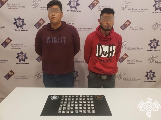 ¡Síguenos!COXCATLÁN, Pue.- Durante un filtro de seguridad en la carretera estatal Tehuacán-Teotitlán, agentes de la Policía Estatal detuvieron a dos presuntos narcomenudistas identificados como Irving D., alias “El Chimba”, y Bryan Y., alias “El Chazo”.