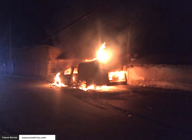 Una pipa que transportaba gas LP presuntamente robado explotó la madrugada de este jueves, sobre Avenida Juárez en San Bartolomé Hueyapan, municipio de Tepeaca.