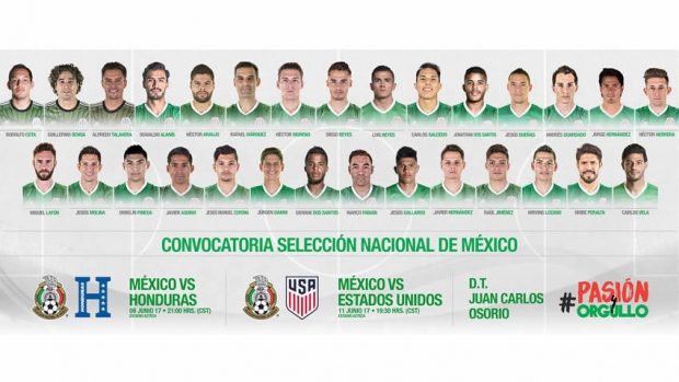 La Dirección de Selecciones Nacionales da a conocer la convocatoria de jugadores elegidos por el Director Técnico Juan Carlos Osorio, para disputar los encuentros de Clasificación Mundialista ante Honduras y Estados Unidos, a celebrarse los días 8 y 11 de junio en la Ciudad de México.